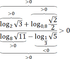 Określ znak każdej z liczb w podanym działaniu. Zauważ, że jeśli podstawa logarytmu