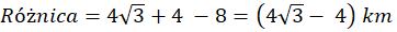 W tym zadaniu musisz obliczyć długość objazdu, a następnie stwierdzić o ile kilometrów objazd jest od dłuższy od normalnej trasy. Długość odcinka AB wynosi 8 km, a kąt