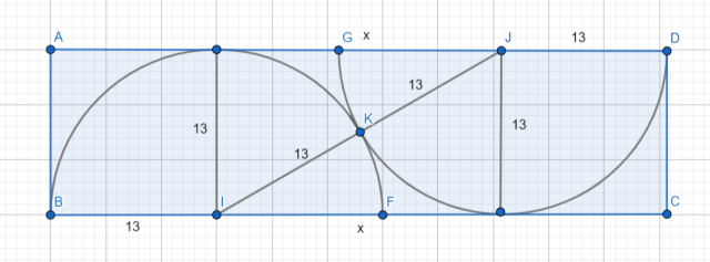 Oblicz długości boków prostokąta z rysunku obok, jeżeli oba półkola mają promień długości 13 cm.