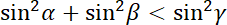 przyjmują wartości od -1 do 1. Zatem suma dwóch kwadratów sinusów nie będzie nigdy większa od 2, a co za tym idzie, nie może być mniejsza od kwadratu sinusa trzeciego kąta, który najwięcej może wynosić 1.