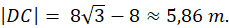 Aby obliczyć odległość gołębia od dachu, w pierwszej kolejności policz długość |AB| stosując twierdzenie tangensa. Następnie oblicz długość |BD|, stosując to samo twierdzenie. W ostatnim kroku oblicz długość |CD|.