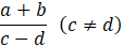 Najpierw dodaj do siebie liczby a i b oraz odejmij liczby c i d, a następnie podziel te liczby przez siebie. Podaj założenie, że c jest różne od d.