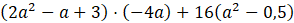 (2a2 - a + 3) ∙ (-4a) + 16(a2 - 0,5) = -8a3 + 4a2 - 12a + 16a2 - 8 = -8a3 + 20a2 - 12a - 8