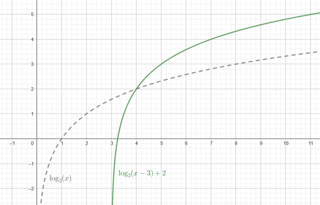 . Następnie naszkicuj wykres powstałej funkcji przesuwając wyjściowy wykres logarytmu o