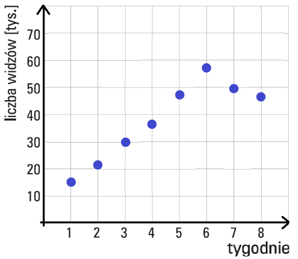 Masz przedstawiony wykres z liczbą widzów pewnego filmu zanotowaną w ciągu kilku dni od premiery. Na jego podstawie odpowiedz na pytania i sporządź jeden wykres.