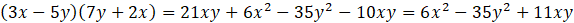 Wymnóż czynniki obu sum algebraicznych przez siebie, a następnie zredukuj wyrazy podobne.