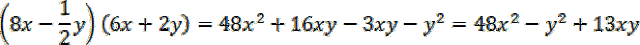 Wykonaj mnożenie nawiasów. Przemnóż wszystkie elementy z pierwszego nawiasu przez wszystkie elementy z drugiego nawiasu i doprowadź wyrażenie do najprostszej postaci.