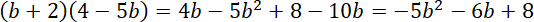 Wykonaj mnożenie nawiasów. Przemnóż wszystkie elementy z pierwszego nawiasu przez wszystkie elementy z drugiego nawiasu i doprowadź wyrażenie do najprostszej postaci.