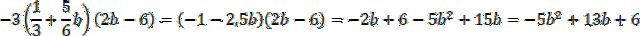 Najpierw przemnóż pierwszy nawias przez (-3). Następnie wykonaj mnożenie nawiasów. Przemnóż wszystkie elementy z pierwszego nawiasu przez wszystkie elementy z drugiego nawiasu i doprowadź wyrażenie do najprostszej postaci.
