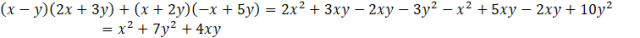 Wymnóż czynniki obu sum algebraicznych przez siebie, a następnie zredukuj wyrazy podobne.