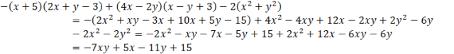 Wymnóż czynniki obu sum algebraicznych przez siebie, a następnie zredukuj wyrazy podobne.