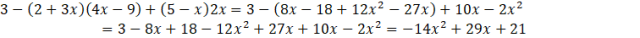 Wymnóż czynniki obu sum algebraicznych przez siebie, a następnie zredukuj wyrazy podobne.
