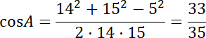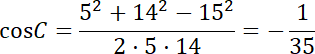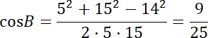 Zastosowaliśmy twierdzenie cosinusów do obliczenia cosinusów kątów trójkąta. Wystarczyło wybrać odpowiednio boki trójkąta jako boki tworzące kąt i przekształcić wzór twierdzenia.