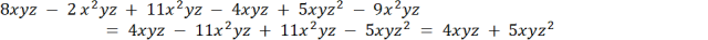 W tym zadaniu należy znaleźć pary wyrazów podobnych, wykonać działania i doprowadzić wyrażenie do najprostszej możliwej postaci, pamiętając o prawidłowej kolejności wykonywania działań. Wyrazy podobne to takie, które mają te same symbole.