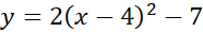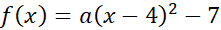 Znając wartość najmniejszą równą -7 dla x =4 możesz wyznaczyć wzór funkcji w postaci kanonicznej, ponieważ współrzędne wartości najmniejszej wyznaczają p i q.