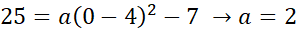 W tym zadaniu wyznacz współczynniki a, b i c funkcji y = ax2 + bx + c widząc, że jej najmniejsza wartość wynosi ymin = -7 dla x = 4, a punkt przecięcia wykresu z osią OY ma współrzędne (0, 25).