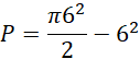 Na rysunku możemy wyróżnić dwie ćwiartki koła o promieniu 6 oraz kwadrat o boku 6.