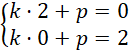Wyznacz w ten sposób szukane wartości liczb k i p.