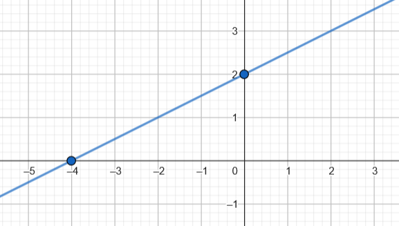 Narysuj wykres i napisz wzór funkcji liniowej , o której wiadomo, że jej wykres przecina osie układu współrzędnych w punktach (-4;0) i (0;2).
