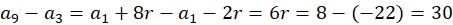 Należy wyznaczyć różnicę ciągu arytmetycznego wiedząc, że ma siedemnaście wyrazów. Trzeci wyraz tego ciągu wynosi -22, środkowy zaś jest równy 8.