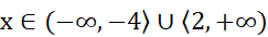 Znajdź liczbę, która znajduje się pomiędzy –4 i 2, a następnie oblicz różnicę od jednego z punktów. Odległość x od –1 jest większa lub równa 3.