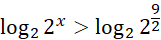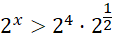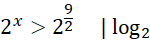 Rozwiązując nierówność z x w wykładniku potęgi, doprowadź ją do takiej postaci, aby po obu stronach nierówności znalazły się potęgi o tej samej podstawie równej 2, różniące się jedynie wykładnikiem potęgi. Następnie wykonaj obustronne działanie, polegające na wrzuceniu obu wyrażeń do liczby logarytmowanej logarytmu o podstawie 2. Uprość powstałe wyrażenia, korzystając z własności