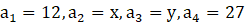 W tym zadaniu musisz wyznaczyć liczby x, y tak, aby dany ciąg był arytmetyczny.