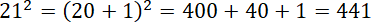 Zapisz 21 jako 20 + 1. Skorzystaj ze wzoru skróconego mnożenia: