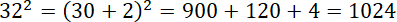 Zapisz 32 jako 30 + 2. Skorzystaj ze wzoru skróconego mnożenia: