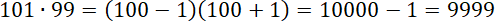 Zapisz 101 jako 100 + 1 i 99 jako 100 – 1. Skorzystaj ze wzoru skróconego mnożenia: