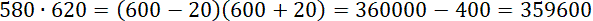 Zapisz 580 jako 600 – 20 i 620 jako 600 + 20. Skorzystaj ze wzoru skróconego mnożenia: