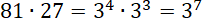 Zamień liczby na takie, które posiadają liczbę 3 w podstawie i zastosuj prawa działań na potęgach: