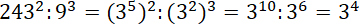 Zamień liczby na takie, które posiadają liczbę 3 w podstawie i zastosuj prawa działań na potęgach: