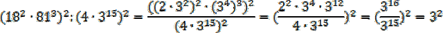 Zamień liczby na takie, które posiadają liczbę 3 w podstawie i zastosuj prawa działań na potęgach: