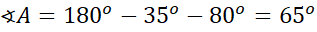Wyznacz brakującą miarę kąta w trójkącie, a następnie skorzystaj z twierdzenia sinusów