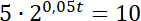 Zauważ, że substancja się podwoi, gdy jej masa wyniesie 10 g. Przyrównaj tą wartość do podanego wzoru i wyznacz z niego