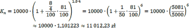 – liczba lat na lokacie. Podstaw znane wartości pod podany wzór i oblicz kwotę jaka znajdzie się na koncie po danym czasie. Na koniec oblicz zarobek.