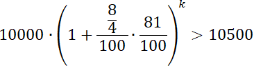 Ustal, po ilu kwartałach zysk z lokaty byłby równy co najmniej 500 zł. W obliczeniach uwzględnij 19-procentowy podatek od dochodów kapitałowych, jeśli założył w banku lokatę w wysokości 10 000 zł na procent składany z kwartalną kapitalizacją odsetek. Roczne oprocentowanie tej lokaty wynosi 8% i się nie zmienia.