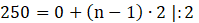 Aby wyznaczyć n, skorzystaj ze wzoru na ogólny ciąg arytmetyczny.