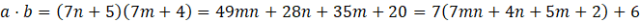 Zapisujesz dwie liczby tak, aby móc przedstawić wartość reszty z dzielenia. Następnie wymnażasz je i wynik doprowadzasz do takiej postaci, aby uzyskać dowód na resztę z dzielenia przez 7.