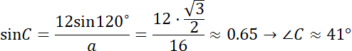 Resztę kątów obliczymy z twierdzenia sinusów: