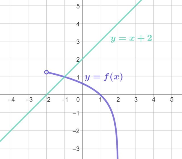 Wyznacz rozwiązanie podanej nierówności, czyli argumenty, dla których wykres funkcji f leży powyżej wykresu funkcji y = x + 2.