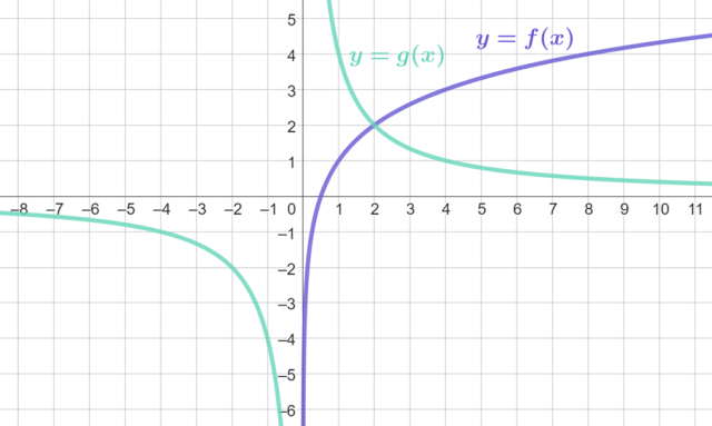 Odczytaj rozwiązanie nierówności, czyli argumenty, dla których wykres funkcji f leży powyżej wykresu funkcji g.