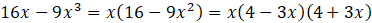 Najpierw wyciągnij wspólny czynnik przed nawias, a następnie skorzystaj z wzoru skróconego mnożenia: a2 – b2 = (a – b)(a + b).