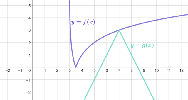 W przypadku drugiej z funkcji narysuj wykres funkcji y = |x|, przesuń go o 7 jednostek w prawo wzdłuż osi x, odbij go symetrycznie względem osi x, rozciągnij dwukrotnie wzdłuż osi y, przesuń o 3 jednostki w górę wzdłuż osi y.