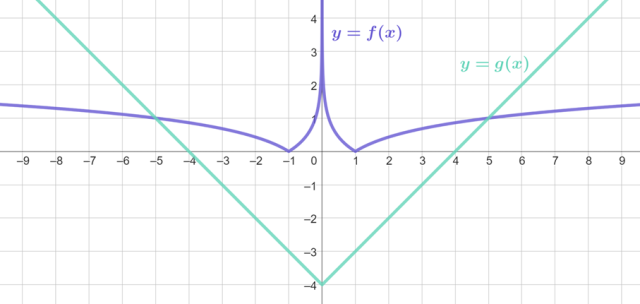 W przypadku drugiej z funkcji narysuj wykres funkcji y = |x| i przesuń go o 4 jednostek w dół wzdłuż osi y.