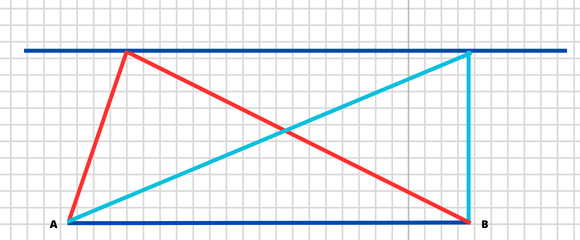 Założenie: trójkąty mają tę samą podstawę AB, a ich wierzchołki C i D leżą na tej samej prostej równoległej do podstawy AB