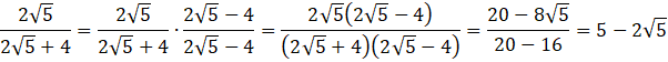 Usuń niewymierność z mianownika, korzystając z wzoru skróconego mnożenia: a2 – b2 = (a – b)(a + b).