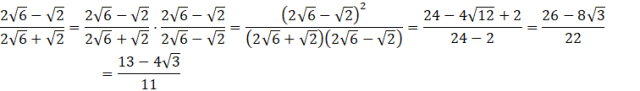 Usuń niewymierność z mianownika, korzystając z wzoru skróconego mnożenia: a2 – b2 = (a – b)(a + b).