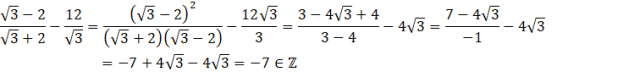 Dowód przeprowadź, usuwając niewymierność z mianownika z wykorzystaniem wzoru skróconego mnożenia: a2 – b2 = (a – b)(a + b), a następnie redukując wyrazy podobne.